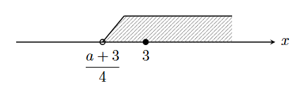 解が $x>2$ であるから, $\dfrac{a+3}{4}=2$故に$a=5$. - (2) $x=3$ が$x>\dfrac{a+3}{4}$を満たすから, $\dfrac{a+3}{4}<3$